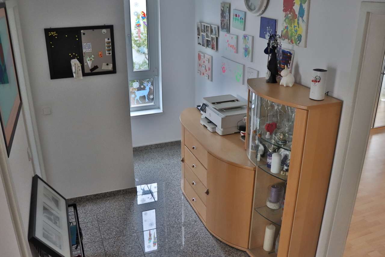 Der Bodenbelag besteht aus einer Kombination von Fliesen und Laminat, die sowohl stilvoll als auch pflegeleicht sind. Im Keller finden Sie zusätzlichen Stauraum und ein praktisches Gäste-WC. Die moderne Einbauküche ist im Kaufpreis enthalten und lässt keine Wünsche offen.