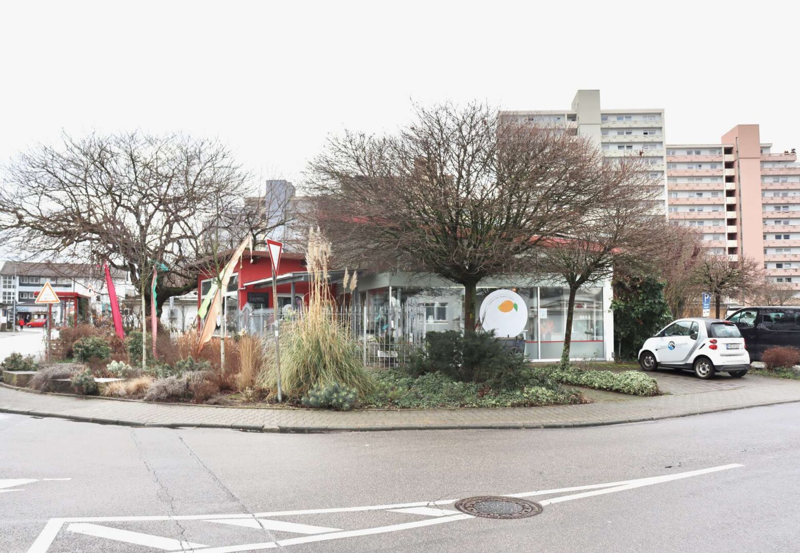 Die Außenflächen (Grundstück ca. 1.782 m²) mit Grünanlage bieten nicht nur einen angenehmen Eindruck für Kunden, sondern lassen sich je nach Konzept auch für Außenpräsentation, Wartezonen, Aufenthaltsbereiche oder eine ansprechende Gestaltung nutzen (je nach behördlicher Genehmigung / Erbbaurechtsvertrag).