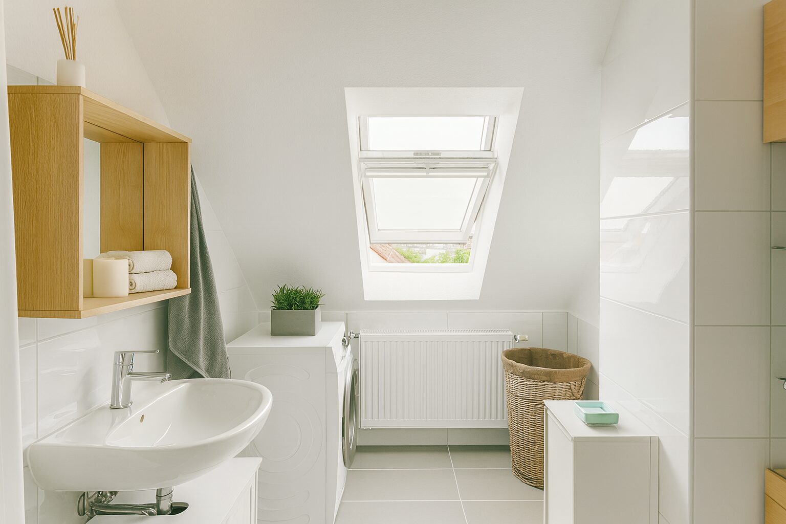 - Tageslichtbad mit Wanne u. WM Anschluss